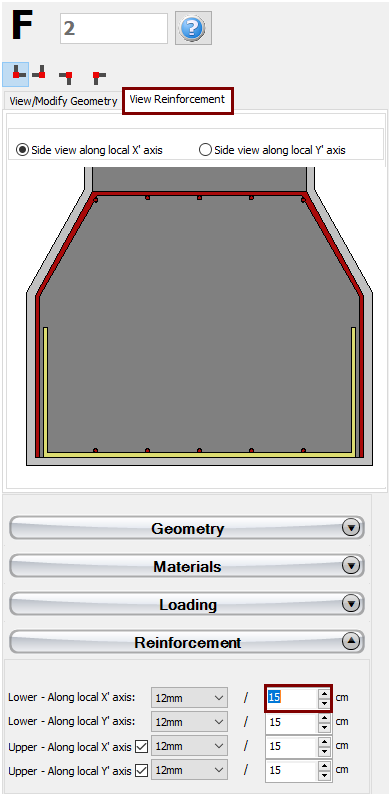The longitudinal and transverse reinforcement may be defined by editing the relevant reinforcement patterns.