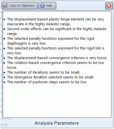 These predefined Settings Schemes have been chosen so as to fit the requirements of multiple types of analysis and models, leading to optimised solutions in terms of performance efficiency and results accuracy. Depending on a model’s particular characteristics and demands, different Settings Schemes might fit at different cases; the program carries out an internal check and a notification message is issued, whenever one or more of the settings do not seem to suit the needs of the specific project. The notification messages that might appear are the following: