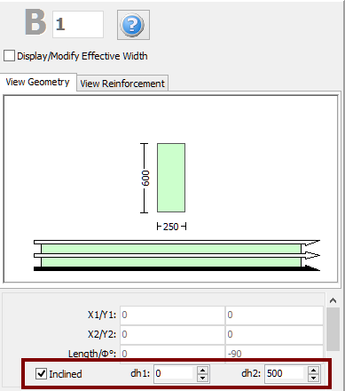 Inclined beams may be efficiently modelled in Building Modeller. On the beam's Properties Window users should enable the Inclined checkbox and specify the elevation differences of the two beam ends relatively to the storey height.