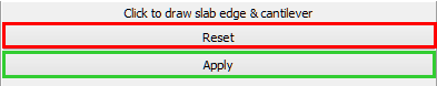 After defining the slab's corner points, the Apply button should be clicked on the Properties Window to complete its insertion. Alternatively, with the Reset button user may decide to redraw the slab.