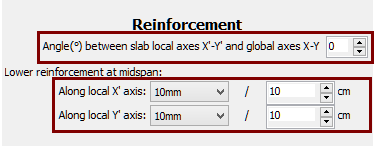 The slab's reinforcement and its rotation to the X & Y axes may be defined: