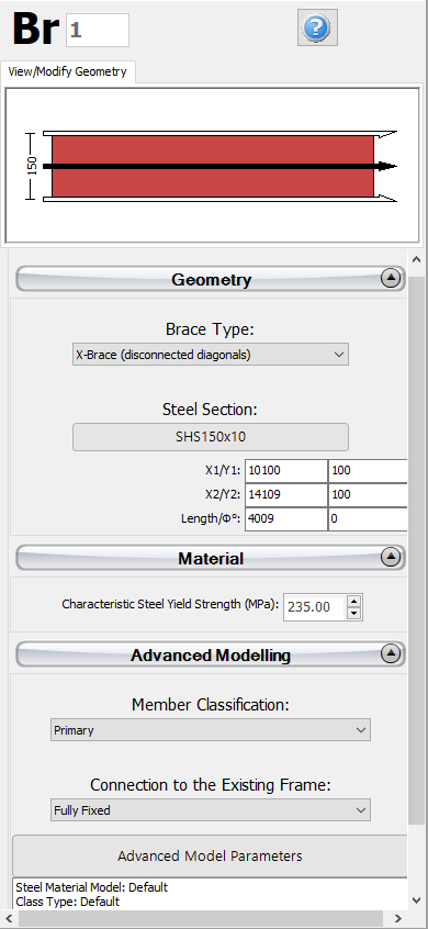 On the Properties Window that appears, users can adapt the main parameters that affect the strength and stiffness of the new brace.