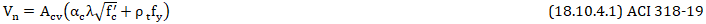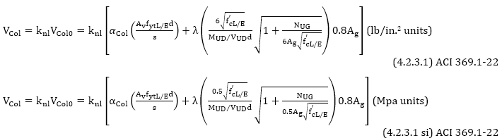 The Shear capacity of columns is calculated through the following expression according to section 4.2.3.1 of ACI 369.1-22.