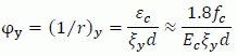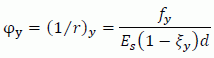 The yield curvature of the end section is calculated according to the following expressions, and it is the lower of the two values below: (a) for the case that the section's yielding is due to steel yielding and (b) for the case that the section yields due to the deformation non-linearities of the concrete in compression.