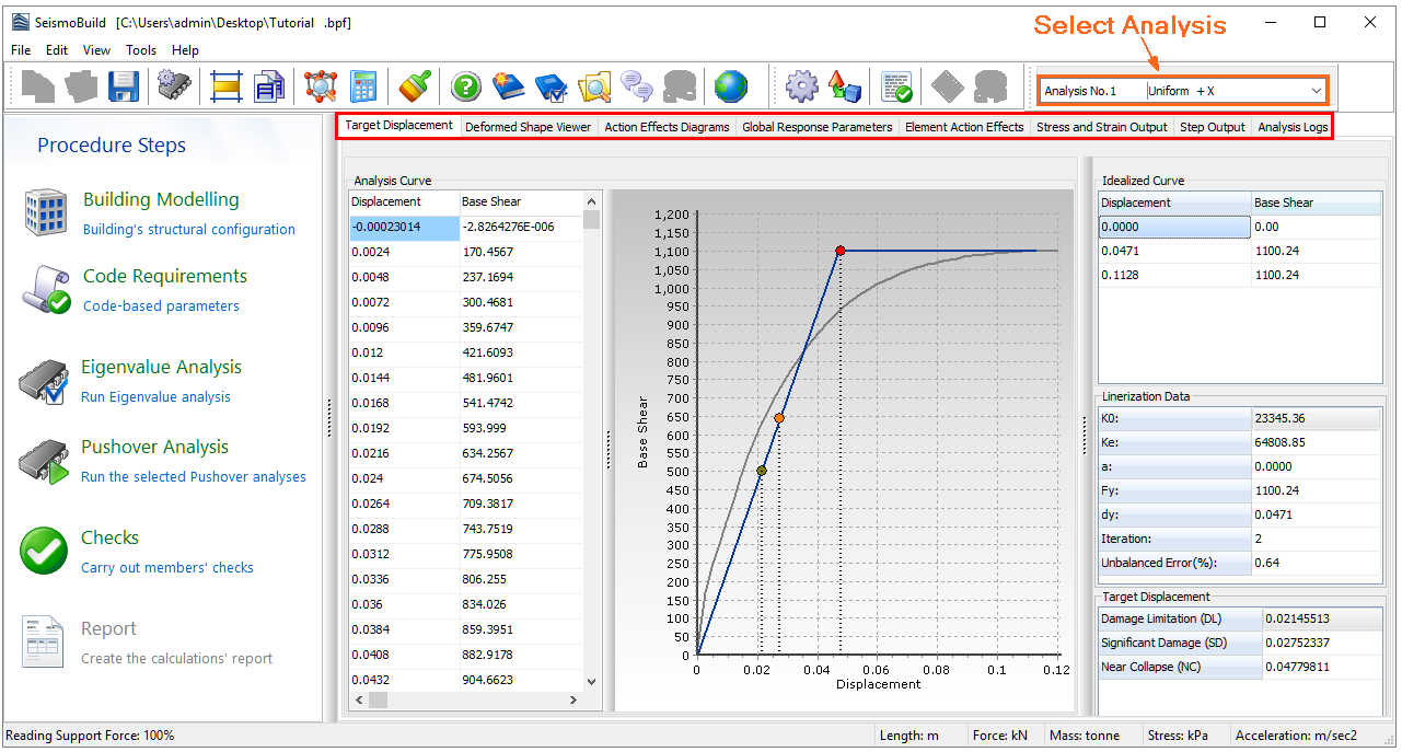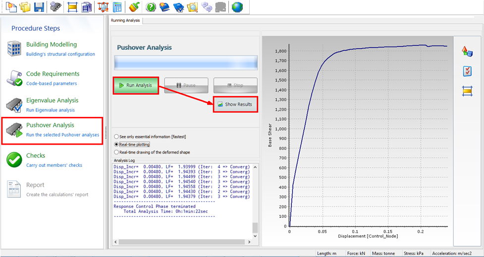 The Pushover analysis results area looks like this: