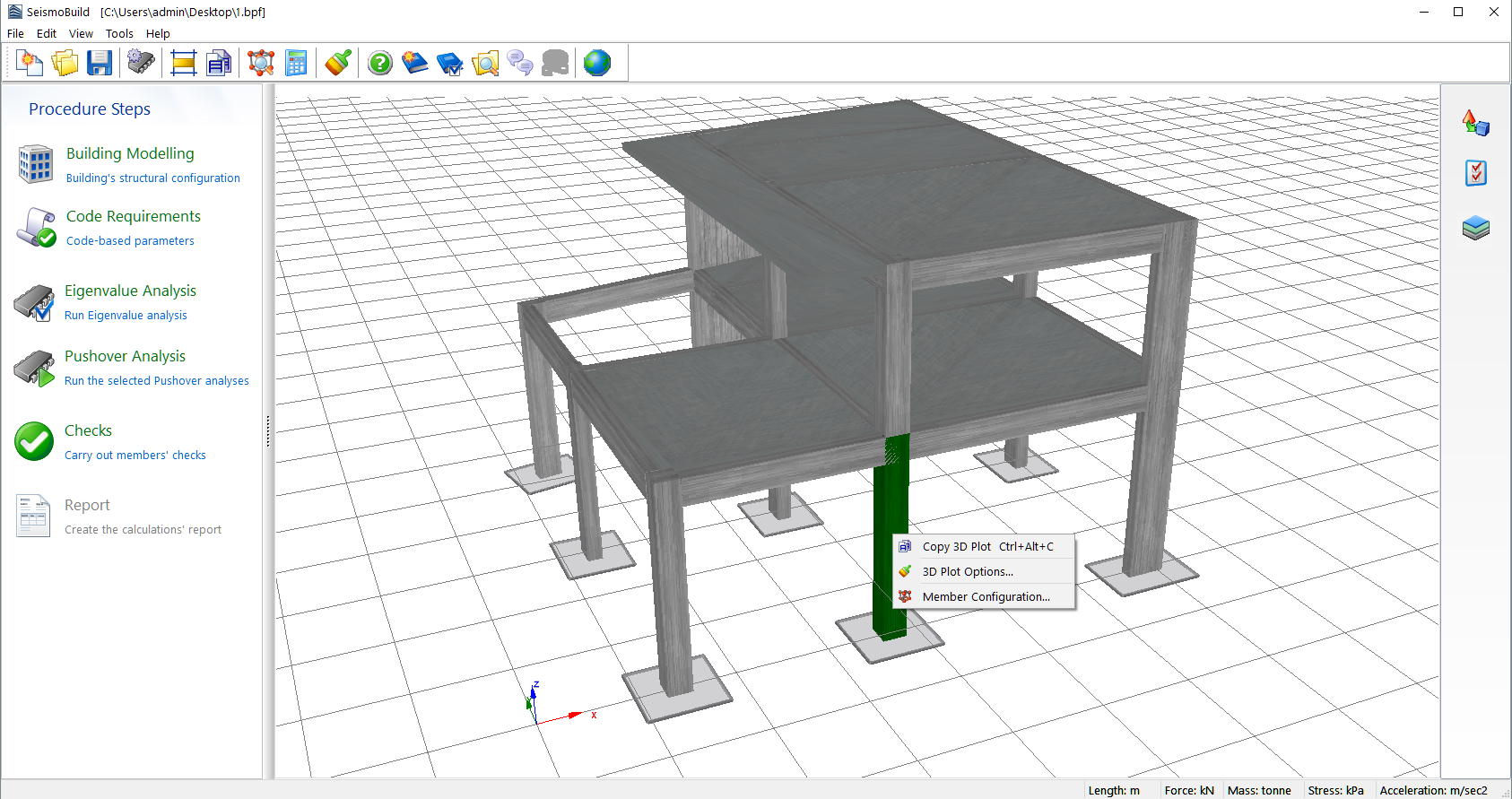Users can also quickly zoom, rotate, and move the 3D/2D plot of the structural model, by using either the mouse (highly recommended) or keyboard shortcuts, as described in here. Further, it is also possible to point & click elements to quickly go to the Building Modeller to view/modify element’s properties, or right-click and select "Member Configuration...".