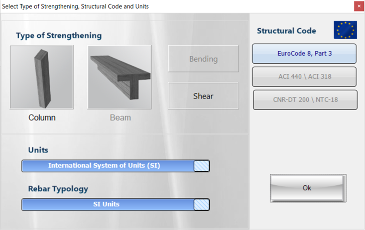 The properties of the existing members like geometry, reinforcement, materials, loads and code-related parameters can be easily introduced using a user-friendly visual interface. A large variety of commercially available FRP laminates is available in the software while the user can introduce custom FRP laminate types. Parameters associated to the FRP wrapping like Radius of corners, number of FRP layers etc can also be easily introduced in the program.