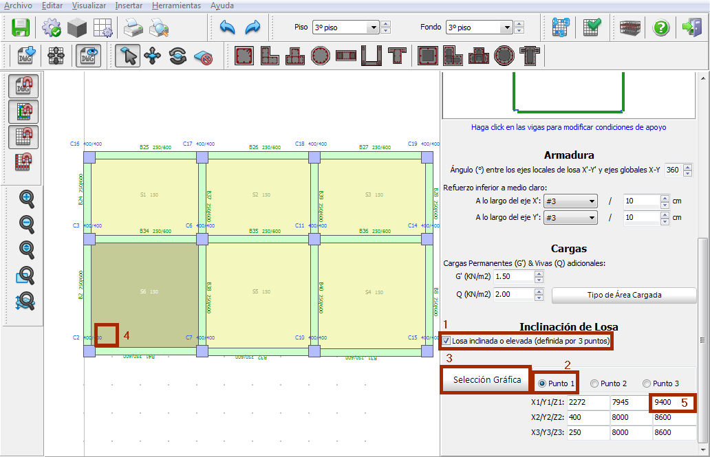 - especifique el punto en la losa en la Ventana Principal haciendo click sobre el mismo;