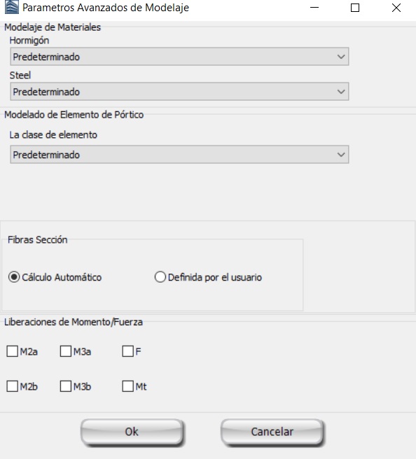Los parámetros de modelaje estructural del miembro también pueden definirse a través de la ventana de diálogo de Parámetros de Modelaje, que abre mediante el botón corrrespondiente.