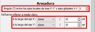 El refuerzo de la losa y su rotación en los ejes X & Y puede definirse: