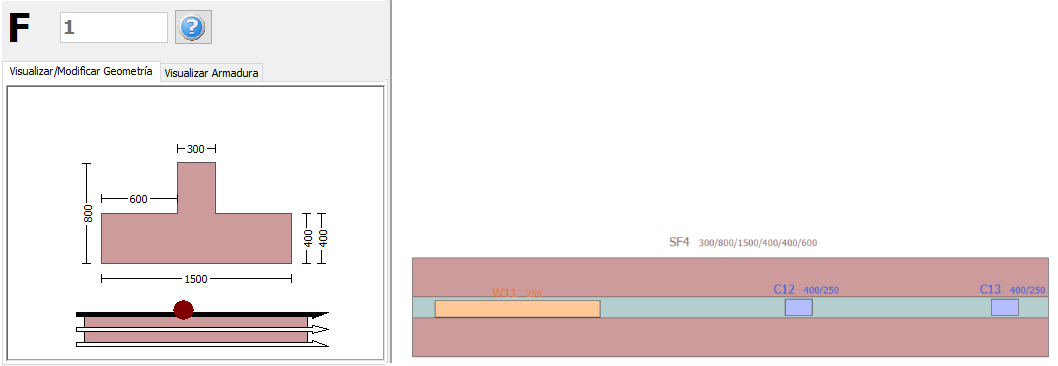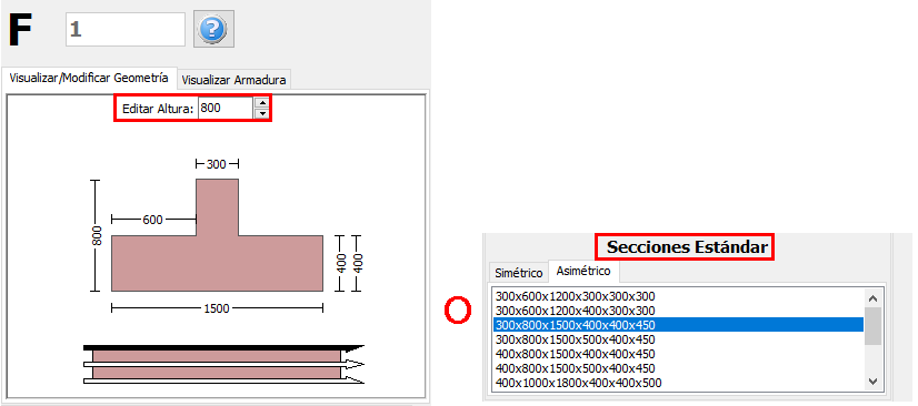 En la Ventana de Propiedades de la zapata corrida los usuarios pueden adaptar las dimensiones de la sección ya sea en la ventana de Ver/Modificar Geometría o seleccionando una sección de las predefinidas en el programa.