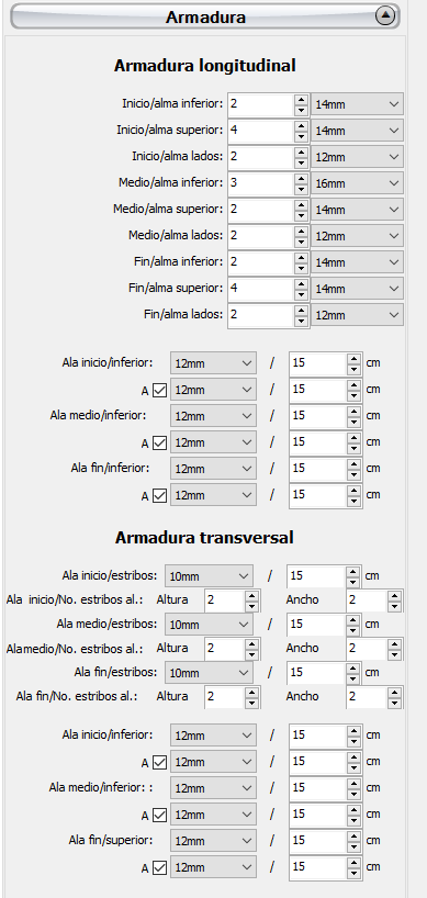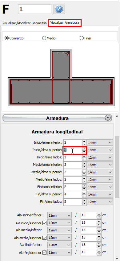 Cuando se editan los patrones de refuerzo el programa automáticamente cambia a la pantalla de Vista de Reforzamiento, donde el refuerzo (longitudinal y transversal) de la sección se muestra y los usuarios pueden revisar que se haya asignado correctamente.