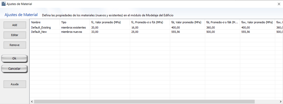 La opción de aplicar resistencias de material predefinidas, dependiendo del año de construcción del edificio, está disponible cuando esto está permitido desde el Código seleccionado.