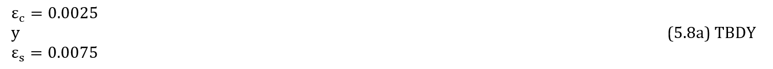 El valor de la capacidad de tensión de hormigón para el nivel de rendimiento de la prevención de colapso, εc (GO), se calcula de acuerdo con las siguientes ecuaciones de TBDY: