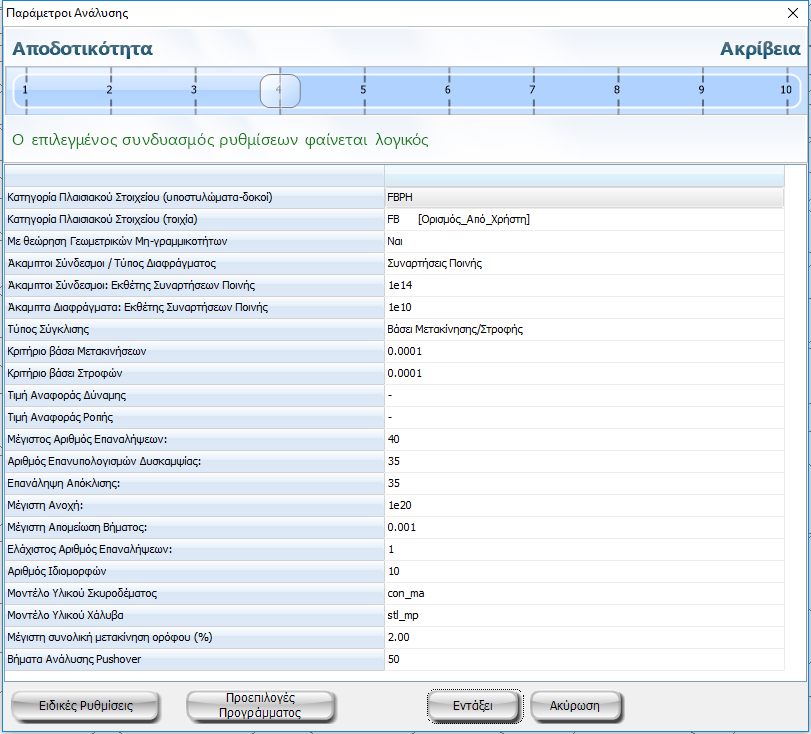 Στη συγκεκριμένη ενότητα οι χρήστες μπορούν να ορίσουν όλες τις παραμέτρους που απαιτούνται για τους μη γραμμικούς αναλυτικούς υπολογισμούς επιλέγοντας ένα προεπιλεγμένο συνδυασμό ρυθμίσεων, κάνοντας κλικ στο κουμπί Ειδικές Ρυθμίσεις ή κάνοντας διπλό κλικ σε μια συγκεκριμένη τιμή για να ανοίξει η αντίστοιχη καρτέλα στην ενότητα Ειδικές Ρυθμίσεις.