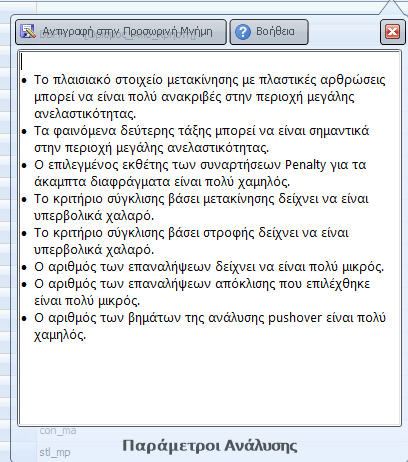 - Αυστηρά κριτήρια σύγκλισης. Ενδεχομένως να προκύψουν προβλήματα σύγκλισης, το πρόγραμμα προειδοποιεί για πιθανά προβλήματα σύγκλισης που ενδέχεται να προκύψουν λόγω των αυστηρών κριτηρίων σύγκλισης που έχουν επιλεχθεί.