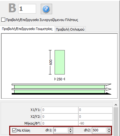 Κεκλιμένες δοκοί μπορούν να προσομοιωθούν αποτελεσματικά στον Προσομοιωτή Κτιρίου. Στο Παράθυρο Ιδιοτήτων της δοκού οι χρήστες πρέπει να ενεργοποιήσουν το πεδίο Με Κλίση και να προσδιορίσουν τις διαφορές της ανύψωσης μεταξύ των δύο άκρων της δοκού σε σχέση με το ύψος του ορόφου.