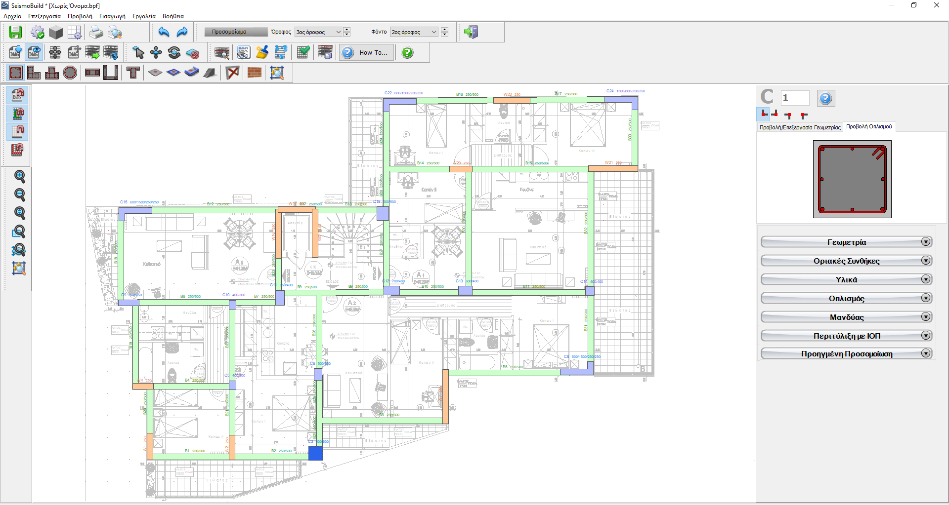 Προκειμένου να διευκολυνθεί ο ορισμός της γεωμετρίας και της θέσης των στοιχείων, μπορεί να εισαχθεί ένα σχέδιο CAD από το κύριο μενού (Αρχείο> Εισαγωγή DWG...) ή μέσω του αντίστοιχου κουμπιού της γραμμής εργαλείων