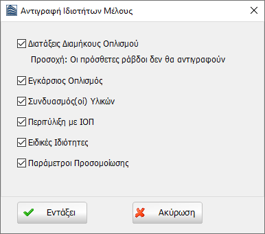 της γραμμής εργαλείων. Ένα παράθυρο με μια λίστα των ιδιοτήτων που θα αντιγραφούν εμφανίζεται μετά την επιλογή του μέλους. Οι χρήστες αρκεί απλώς να κάνουν κλικ πάνω σε ένα μέλος προκειμένου να αλλάξουν τις ιδιότητές του. Σημειώνεται ότι οι πρόσθετες ράβδοι οπλισμού δεν μπορούν να αντιγραφούν.