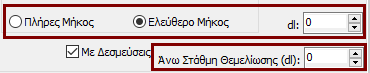 Είναι δυνατόν να οριστεί ύψος υποστυλώματος διαφορετικό από το γενικό ύψος ορόφου, με την επιλογή του κουμπιού Ελεύθερο Μήκος και τον ορισμό ενός διαφορετικού μήκους. Εάν, από την άλλη πλευρά, δεν επιλεχθεί το κουμπί Ελεύθερο Μήκος, τότε το μέλος έχει το ίδιο ύψος με το ύψος του ορόφου. Επιπλέον, η στάθμη θεμελίωσης του υποστυλώματος μπορεί να προσαρμοστεί, παρέχοντας έτσι τη δυνατότητα στο χρήστη να καθορίσει διαφορετικές στάθμες θεμελίωσης.
