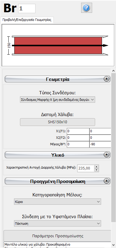 - Ο τύπος του συνδέσμου: επί του παρόντος υποστηρίζονται οι ακόλουθοι τύποι: (i) Σύνδεσμος μορφής X με συνδεδεμένες διαγώνιες, (ii) Σύνδεσμος μορφής X με μη συνδεδεμένες διαγώνιες, (iii) μονή διαγώνιος, (iv) ανεστραμμένη μονή διαγώνιος, (v) Σύνδεσμος μορφής V και (vi) Ανεστραμμένος Σύνδεσμος V (Chevron Σύνδεσμος)