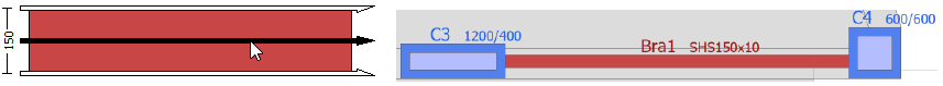 Μετά τον ορισμό όλων των ιδιοτήτων της διατομής, το νέο μέλος μπορεί να προστεθεί με δύο κλικ στο Κύριο Παράθυρο του Προσομοιωτή Κτιρίου, τα οποία ορίζουν την αρχή και το τέλος του τοιχίου. Η γραμμή εισαγωγής μπορεί να βρίσκεται στο κέντρο ή σε οποιαδήποτε από τις δύο πλευρές του τοιχίου. Αυτό μπορεί να οριστεί κάνοντας κλικ σε οποιαδήποτε από τις τρεις γραμμές στο παράθυρο Προβολή/Επεξεργασία Γεωμετρίας (η μαύρη γραμμή είναι η επιλεγμένη γραμμή).