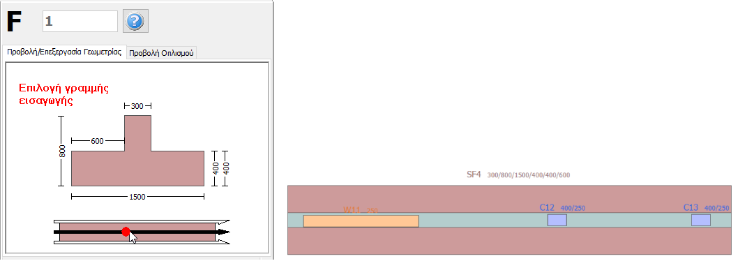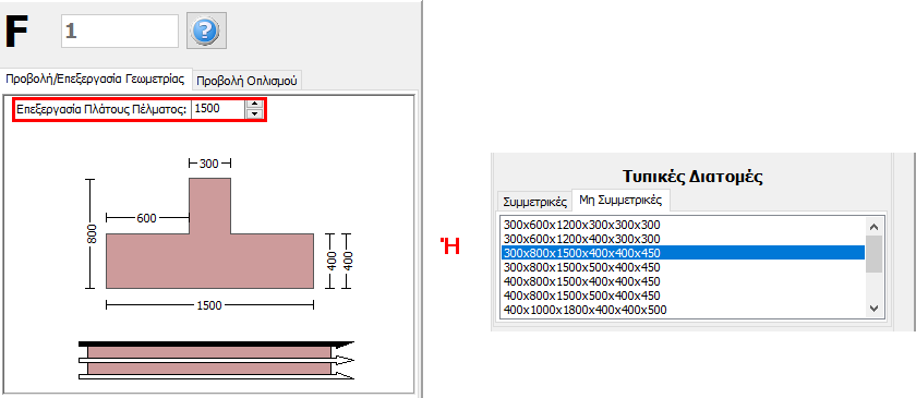 Στο Παράθυρο Ιδιοτήτων που εμφανίζεται, οι χρήστες μπορούν να προσαρμόσουν τις διαστάσεις της διατομής είτε στο παράθυρο Προβολή/Επεξεργασία Γεωμετρίας είτε επιλέγοντας μια διατομή από τις προκαθορισμένες τυπικές διατομές.