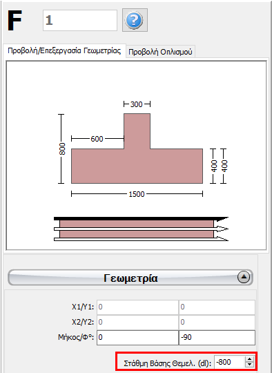 Η στάθμη βάσης θεμελίωσης της πεδιλοδοκού μπορεί να προσαρμοστεί σχετικά με το επίπεδο θεμελίωσης του κτιρίου, προκειμένου να οριστεί διαφορετικό επίπεδο θεμελίωσης για μια συγκεκριμένη πεδιλοδοκό.