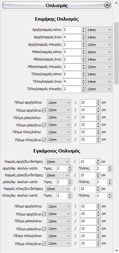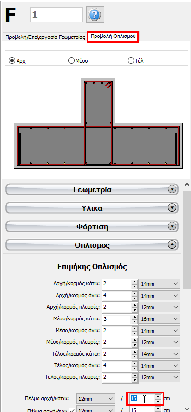 Με την επεξεργασία των διατάξεων οπλισμού το πρόγραμμα αυτομάτως μεταφέρεται στην Προβολή Οπλισμού, όπου προβάλλεται ο οπλισμός της διατομής στην αρχή, στο μέσο και στο τέλος (διαμήκης και εγκάρσιος) και μπορεί να ελεγχθεί η σωστή εισαγωγή του.