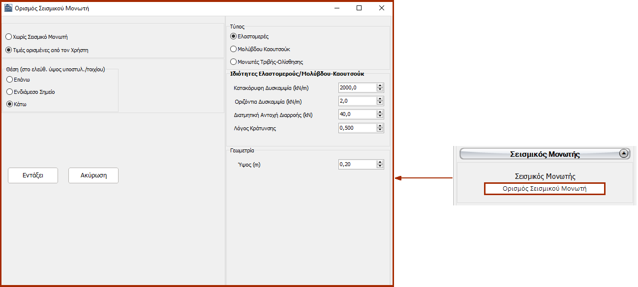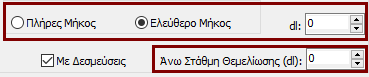 Είναι δυνατόν να οριστεί ύψος τοιχίου διαφορετικό από το ύψος ορόφου, με την επιλογή του κουμπιού Ελεύθερο Μήκος και τον ορισμό διαφορετικού μήκους. Εάν, από την άλλη πλευρά, δεν επιλεχθεί το κουμπί Ελεύθερο Μήκος τότε το μέλος έχει το ίδιο ύψος με το ύψος του ορόφου. Επιπλέον, η στάθμη θεμελίωσης του υποστυλώματος μπορεί να προσαρμοστεί, παρέχοντας έτσι τη δυνατότητα στον χρήστη να καθορίσει διαφορετικές στάθμες θεμελίωσης.