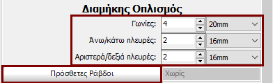 Επίσης, η προσθήκη μεμονωμένων διαμήκων ράβδων μπορεί να γίνει μέσω της αντίστοιχης ενότητας Πρόσθετες Ράβδοι, όπου πρόσθετος οπλισμός μπορεί να εισαχθεί γραφικά.