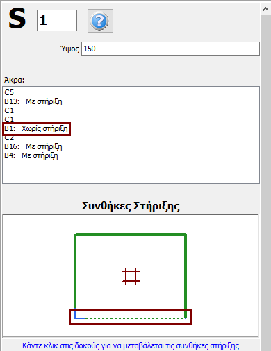 Οι συνθήκες στήριξης μιας πλάκας μπορούν να τροποποιηθούν μετά την εισαγωγή της, προσαρμόζοντας σε ποιες δοκούς θα κατανεμηθούν τα φορτία της πλάκας. Προκειμένου να γίνει αυτό, επιλέξτε την πλάκα και εντός του παραθύρου Συνθήκες Στήριξης του Παραθύρου Ιδιοτήτων κάντε κλικ πάνω στις δοκούς για να τροποποιήσετε τις συνθήκες στήριξης της πλάκας.