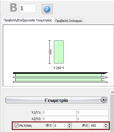 Οι κεκλιμένες δοκοί μπορούν να προσομοιωθούν αποτελεσματικά καθορίζοντας τις διαφορές ανύψωσης των δύο άκρων της δοκού σε σχέση με το ύψος του ορόφου. Το ύψος των υποστυλωμάτων στήριξης προσαρμόζεται αυτόματα.