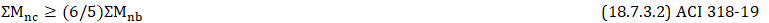 Όπου ΣMnc είναι το άθροισμα των καμπτικών αντοχών των υποστυλωμάτων που συντρέχουν στον κόμβο και ΣMnb είναι το άθροισμα των καμπτικών αντοχών των δοκών που συντρέχουν στον κόμβο. Ο έλεγχος πλαστιμότητας των κόμβων δεν εφαρμόζεται στους κόμβους ανώτατου επιπέδου πολυώροφων κτιρίων σύμφωνα με την ενότητα 18.7.3.1 του ACI 318-19.