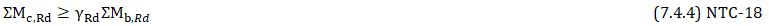 Όπου η τιμή του γRd λαμβάνεται από τον πίνακα 7.2.Ι του NTC-18, ΣMc,Rd είναι το άθροισμα των καμπτικών αντοχών των υποστυλωμάτων που συντρέχουν στον κόμβο και ΣMb,Rd είναι το άθροισμα των καμπτικών αντοχών των δοκών που συντρέχουν στον κόμβο