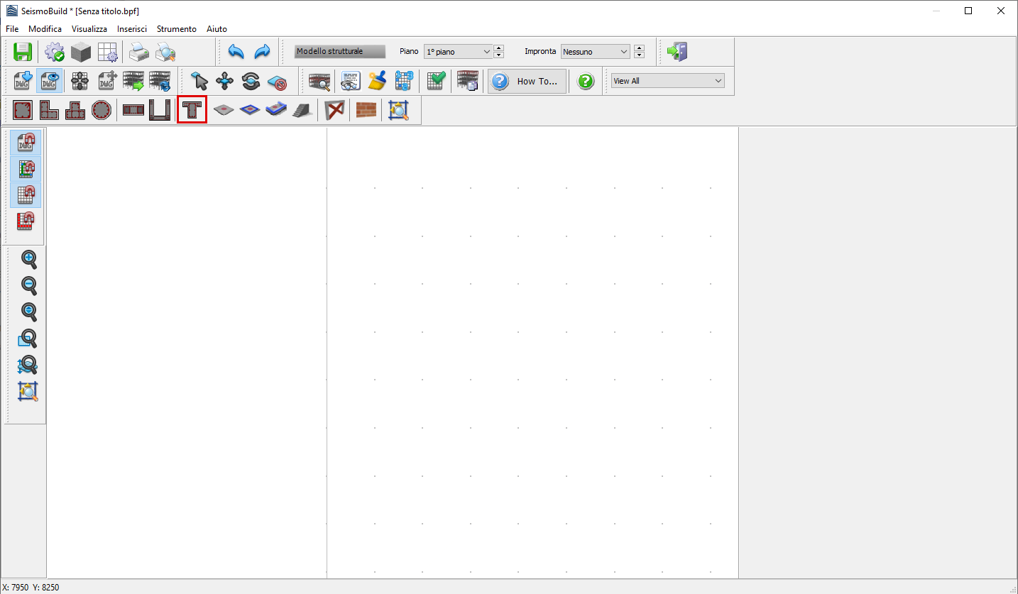 Le travi possono essere inserite dal menu principale (Inserisci > Trave) oppure tramite il corrispondente pulsante della barra degli strumenti