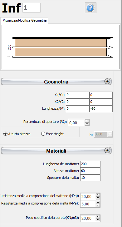 Nella finestra delle proprietà, gli utenti possono impostare i parametri principali che influenzano la resistenza e la rigidezza della tamponatura, ossia