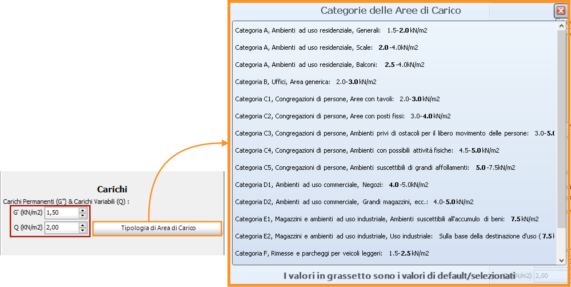 Il peso proprio può essere calcolato automaticamente in accordo con la geometria, materiali e peso specifico della rampa oppure può essere utilizzato un valore fornito dall'utente. I carichi addizionali permanenti e variabili possono essere definiti entrambi manualmente o selezionando l'appropriato carico dalla corrispondente lista. Il carico da neve è richiesto solo per le ASCE 41-23 e TBDY.