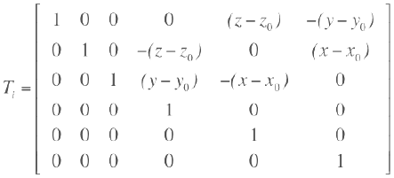 - I Fattori di Partecipazione Modale per le rotazioni sono calcolati considerando una matrice di trasformazione definita come segue (dove x0, y0, z0 sono le coordinate del centro di massa), così che il fattore di eccitazione modale diventa