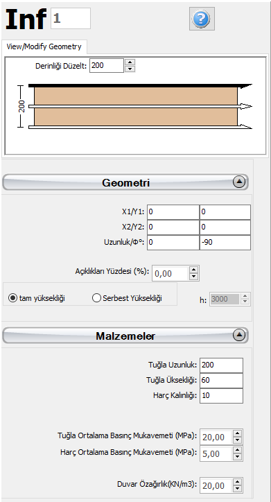 Dolgunun Özellikleri Penceresinde kullanıcılar, Geometriyi Görüntüle/Değiştir penceresinde kesitin boyutlarını uyarlayabilir.