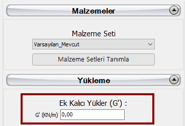 Kirişlerin kesitleri modülüne, yapının zati ağırlığıyla ilişkilendirilmeyen herhangi bir yük (ör. ince işler, dolgular, değişken yük, vb.) tanımlamak için ek kalıcı yayılı yük atanabilir.