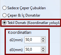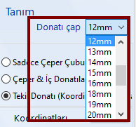- donatı çapı seçilir;