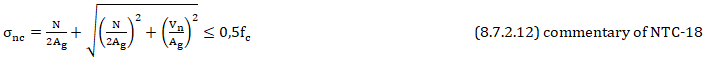 İlgili denklemde belirtilen parametrelerin değerleri için, NTC-18 C8.7.2.3.5'e başvurunuz.