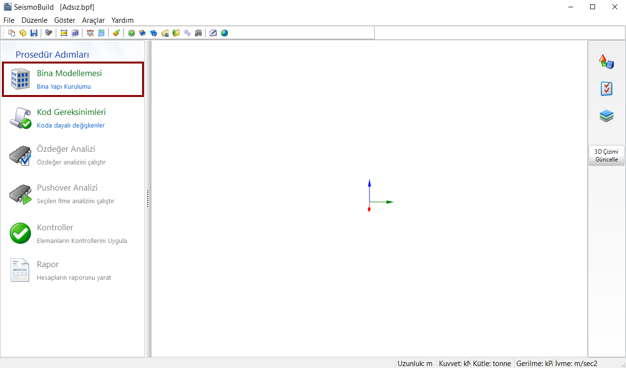 Bina Modelleyicisi Ana Penceresi belirir.