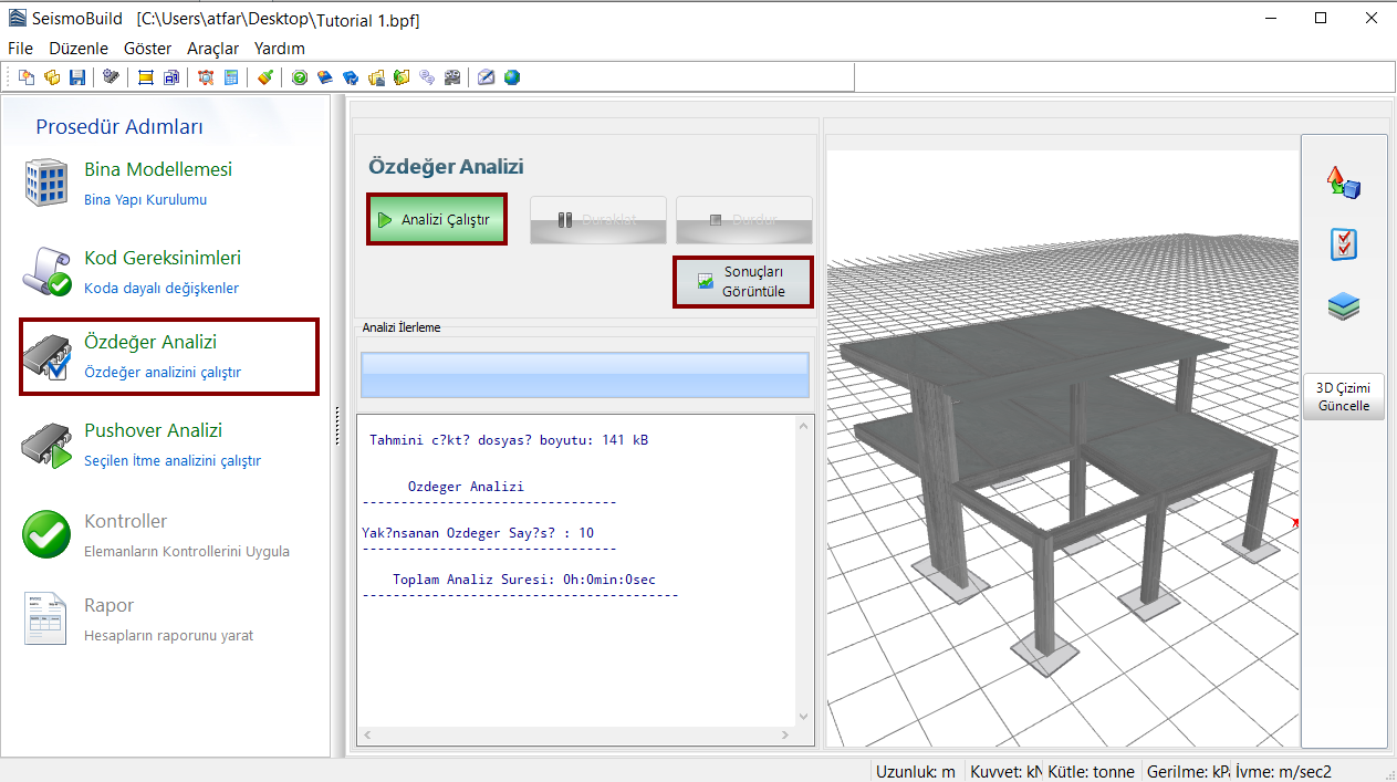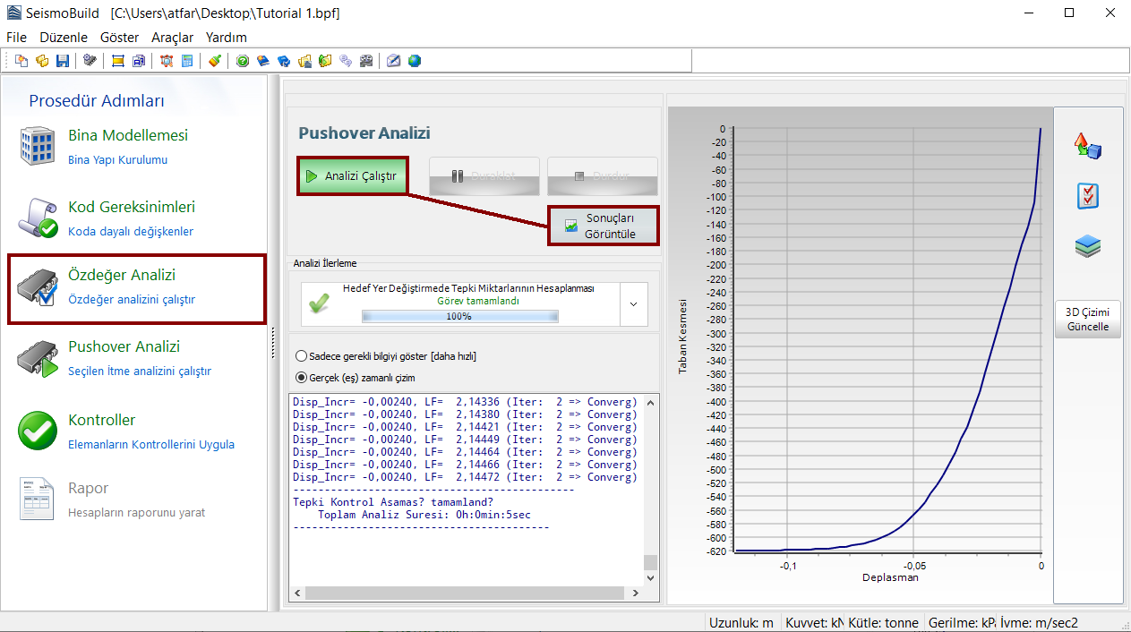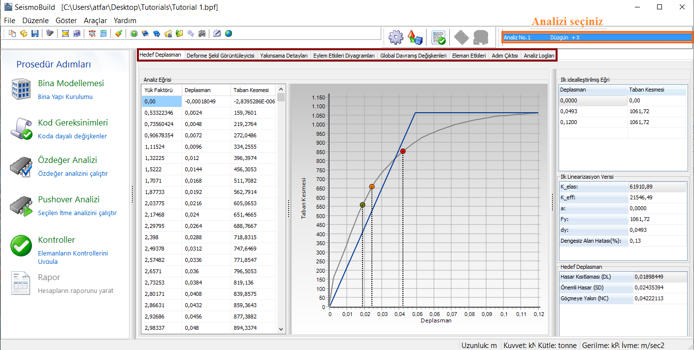 Seçili tüm İtme (Pushover) Analizleri'ni çalıştırınız. Analizler tamamlandıktan sonra, ilgili sonuçları görüntüleyebilirsiniz.