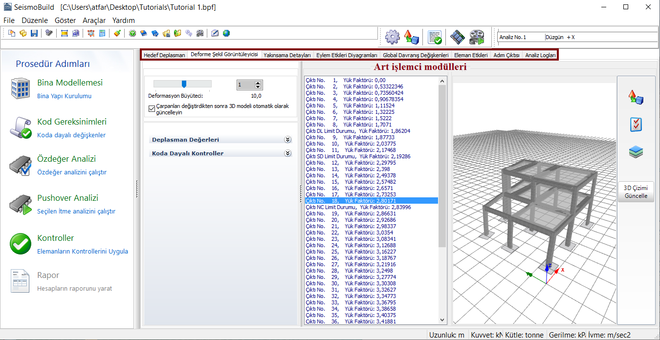 - Hedef Deplasman (İtme analiz sonuçlarında mevcuttur)