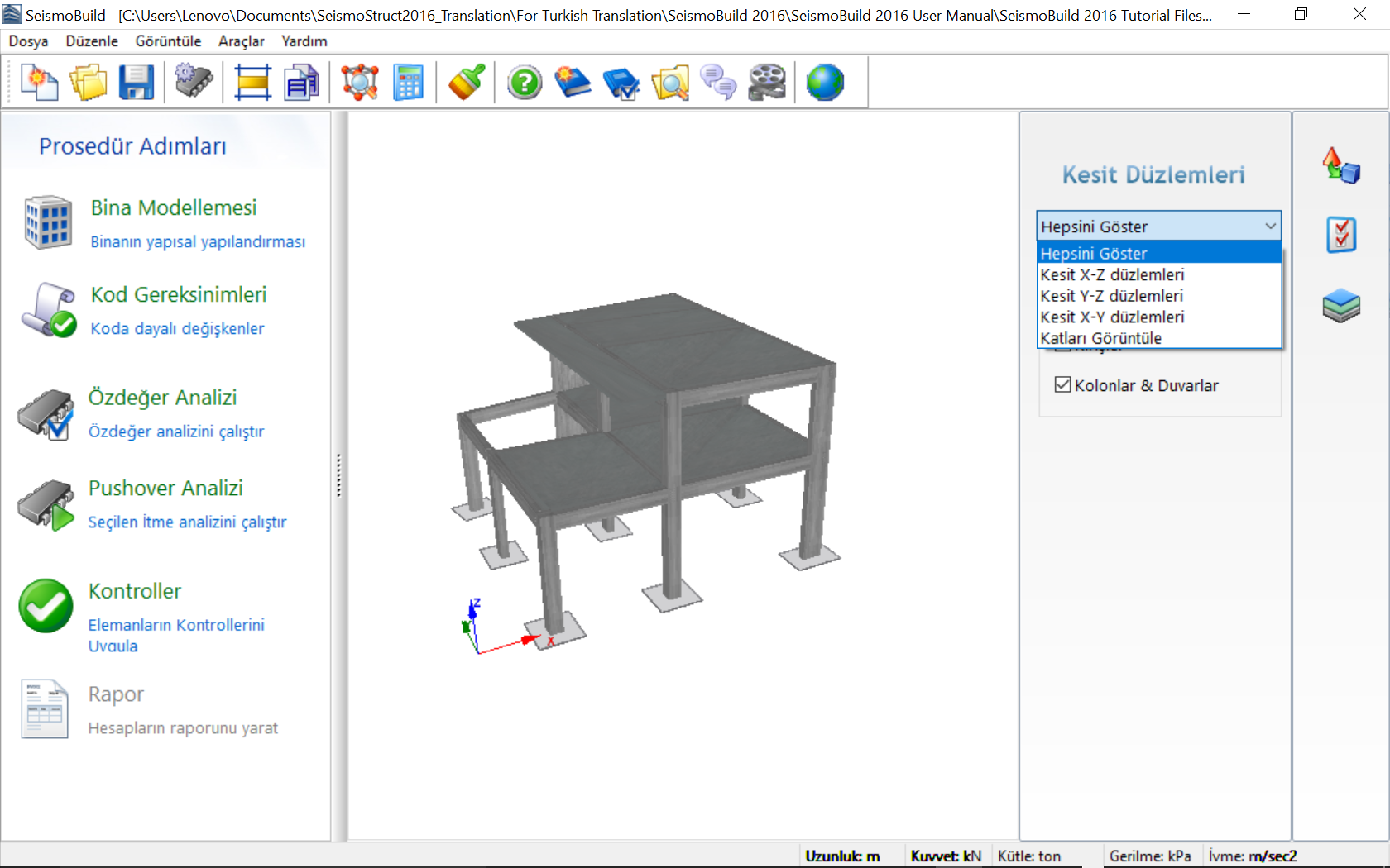 Önceki özelliklere ek olarak, Kesit Düzlemleri özelliği de sağ tarafta bulunan ilgili düğmeyle