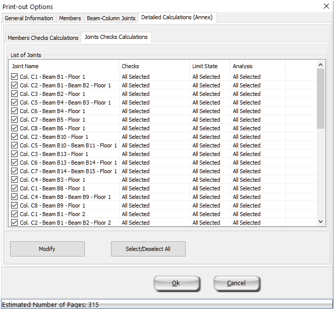Ayrıntılı Hesaplar (Ek) modülünden, ayrıntılı hesapların rapora dahil edileceği eleman ve kiriş-kolon bağlantılarını seçilir. Bu modül, doğrusal olmayan statik prosedür için kullanılabilir.