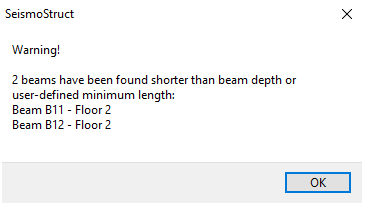 for the existence of any beam with free span smaller than its static height should be carried out when the modelling is completed, in order to check for the existence of very short beams that might have been created unintentionally (due to graphical reasons). If such beams exist the following message appears.