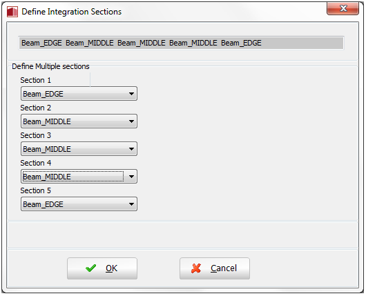 In addition, the number of integration sections needs to be defined. A number between 4 and 7 integration sections will typically be adopted, though users are warmly invited to search the bibliography [e.g. Papadrakakis 2008; Calabrese et al. 2010] for further guidance on this matter (it is recalled that the location of such integration sections across the element's length are indicated in Material Inelasticity). In particular it is noted that up to 7 integrations sections may be needed to accurately model hardening response, but, on the other hand, 4 or 5 integration sections may be advisable when it is foreseen that the elements will reach their softening response range.